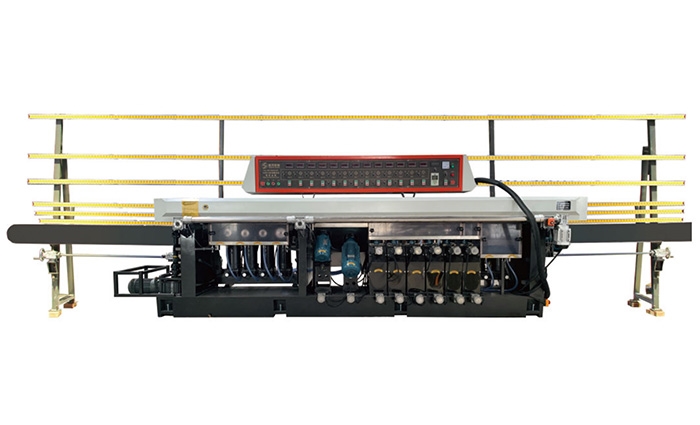 該機磨輪采用水磨片,配置蝸牛扣接頭,變頻調(diào)速,可電動調(diào)節(jié)電機的前后,升降移動,可磨削不同尺寸、厚度的石材和巖板,加工正面倒角、定厚+直角底邊、拉中槽帶加拋光、拉邊槽帶拋光、加厚直邊見光、直線底邊45°倒角、小R圓帶側(cè)拋光,開槽磨光、海棠角背切、背切、踢腳線、防滑槽、法國邊、直邊、棱角邊等,能一次性完成粗磨、精磨和拋光工序,加工后亮度高于板面亮度,該機結(jié)構(gòu)先進(jìn)合理,精準(zhǔn)度高,效率快,操作方便,維護(hù)簡單,磨削過程中可電動調(diào)節(jié)進(jìn)料速度和進(jìn)行量,最大加工4m/分鐘,機械正常使用相當(dāng)于正常石材加工15個人工作量,并杜絕出現(xiàn)工人加工時產(chǎn)生的工藝缺陷。