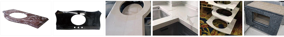 廚房臺面,衛(wèi)浴臺面,石材茶幾桌面,異型吧臺,臺盆也的切割,前羅馬邊,后圓弧擋水的成型和拋光,在解決石材臺面生產(chǎn)過程中費時費力,成本高的問題。 可加工的材料:石英石,大理石,人造石,花崗巖,巖板等材料。