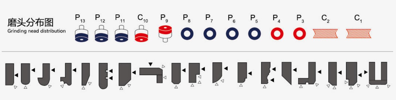 可選配置:13-14磨頭可選,前6個(gè)電機(jī)可電動(dòng)調(diào)節(jié)前后,后6個(gè)電機(jī)可45°--90°任意電動(dòng)調(diào)節(jié),可選配遙控器。
